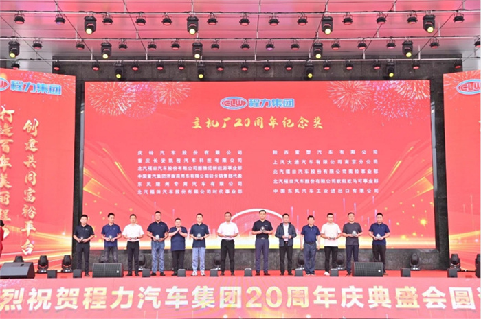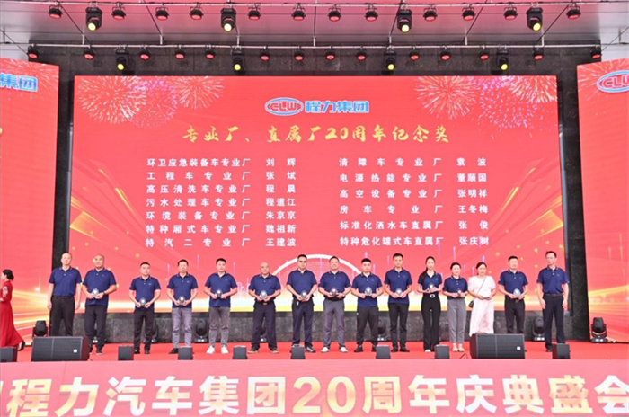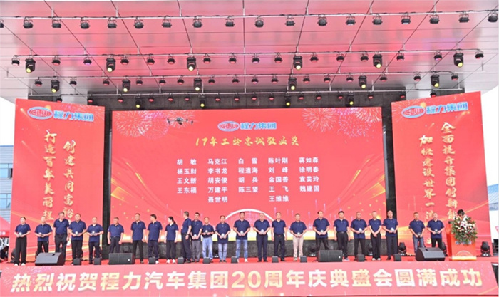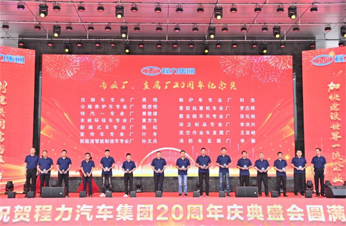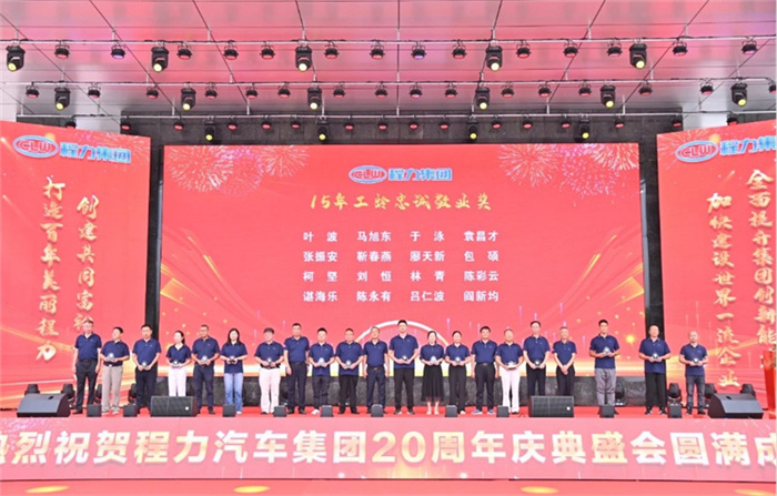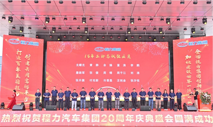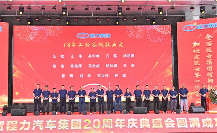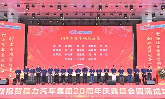 北汽福田汽車股份有限公司Y事業部總裁宋洋先生在致辭中,也全面回顧了福田與程力緊密合作的深厚友誼,對程力20年來的發展成就表示充分的肯定和由衷的贊許。北汽福田汽車股份有限公司助力程力在小卡、微卡實現行業引領,打造了標桿市場,市場份額達到70%,推動了細分市場的發展與創新;新冠疫情期間,江鈴汽車股份有限公司鼎力馳援、力保醫療救護車交付7000余臺,收到了國務院來信表揚。 江鈴汽車股份有限公司副總裁兼江鈴汽車銷售有限公司總經理劉讓坡先生在致辭中,盤點了江鈴與程力兄弟般情誼的合作佳話。 除上述主機廠代表發言外,程力與一汽解放、東風商用車、安徽江淮、長安凱程、南京依維柯、陜汽集團、東風隨專、上汽大通、成都壹為、三環汽車等合作單位,先后聯袂打造了航天醫監醫保車、應急救險車等眾多的成功合作案例,正是各位底盤合作單位的鼎力相助,我們將天馬行空的設計理念轉化為馳騁路面的各類專用車輛,讓每一款改裝作品都閃耀著獨特的光芒,成為行業內的佼佼者。 襄陽達安汽車檢測中心有限公司副總經理齊剛先生致辭。程力公司自建廠以來,與襄陽達安檢測中心展開合作。作為國家級的檢測機構,襄陽達安在公告、環保、營運等檢測認證,以及檢測場地、專家團隊等諸多方面,都給予了我們強有力的支持,特別是今年襄陽達安隨州專用汽車和應急裝備試驗場投入運營,更是助力隨州汽車企業的發展。程力一路走來,離不開襄陽達安的支持和幫助,在此對襄陽達安檢測中心表示衷心的感謝! 賡即,集團公司董事局主席程道國、董事長程阿羅向來自全國參加慶賀的主機廠代表贈予了程力20年“合作紀念獎”獎章。 程力汽車集團副總經理倪文進(左)向檢測機構襄陽達安汽車檢測中心有限公司、中汽研汽車檢驗中心(武漢)有限公司代表,贈予了程力20年“合作紀念獎”獎章。 民族品牌,唱響世界。程力不僅是中國的程力,也是世界的程力;程力集團在湖北省建有五大核心制造基地,在立足本地的同時,我們用市外聯營模式走向全國走向世界,已成為行業的楷模和榜樣。這一成就典范的背后,離不開程力市外聯營單位的突出貢獻,我們的市外聯營合作伙伴,憑借出色的業務成果、創新的合作模式,以及深遠的對外影響力,在眾多單位中脫穎而出,程力集團總經理朱武(右)向全國6家市外聯營單位的代表頒發了“程力20周年紀念獎”獎章。 程力集團銷售總公司常務副總經理袁美玲(左)向全國共9家服務站及直營店代表頒發了“程力20年紀念獎”獎章。這些在奮戰銷售第一線的直營店,以及售后領域默默耕耘的服務站,他們用不懈的努力和專業的態度贏得了口碑,他們辛勤的付出,為程力產品的銷售與服務做出了巨大貢獻。 二十年比肩同行,二十年披星戴月,二十年同舟共濟,我們更要感恩程力專業廠、直屬廠的辛勤付出和默默奉獻。程力集團黨委書記袁昌才、總經理朱武,為默默耕耘8年以上的生產經營單位共負責人頒發了“程力20周年紀念獎”獎章。 集團公司的發展離不開最早的一批創業者,雖然他們已經退休,但仍然無時無刻關注著集團的發展。他們在公司工作都超過15年,為集團的發展作出了巨大的貢獻,集團董事局常務副主席程國強為光榮退休忠誠敬業獎老員工頒發了獎章。 當我們攜起手來,總有溫暖的臂膀在支撐;一代一代程力人薪火相傳,兢兢業業,開拓創新,奮發圖強,鑄就了今日輝煌,程力汽車集團公司為15年至18年工齡獲得忠頒發了誠敬業獎。 集團董事局常務副主席程國強、集團董事局副主席郭傳文、集團董事局副主席黃尚財、集團董事局委員廖明洲、集團董事局辦公室主任楊祖國為獲獎人員頒獎,并合影留念。 集團董事局主席程道國、集團董事長程阿羅為19年及20年工齡的忠誠敬業獎獲獎者頒獎,并合影留念。頒獎現場一陣陣熱烈的掌聲,表達了對程力忠誠敬業的員工們表示衷心的感謝,正是有了廣大員工在公司忠誠堅守,程力才有一代一代的賡續傳承和輝煌成就! 二十年來,程力堅持創新驅動,不斷推進技術進步和產品升級。從最初的單一產品,到如今涵蓋各類專用汽車、新能源汽車及關鍵零部件的完整產業鏈,程力汽車集團已成為國內領先的綜合性汽車產業集團。為更好詮釋企業文化、企業發展方向,站在新的歷史起點上,讓企業品牌享譽世界,我們將發布程力集團的國際化品牌logo,有請程力汽車集團黨委書記袁昌才,帶領余操、呂仁波、廖朝鳳、陳垚東、梁沙艾、陳永有等6位國際貿易總公司銷售部負責人,共同點亮程力集團的全球化品牌logo。程力國際化品牌logo的發布,預示著程力國際化加快了步伐,程力必將成為一流的國際化公司和世界名牌企業。 程力人有擔當,初心不忘;民族品牌大國工匠,深耕沃土實干興邦。新廠歌,有力量,激勵我們奮發向上,攜手再創新輝煌。有請程力汽車集團黨委書記袁昌才,帶領集團副總經理倪文濤、周厚山、劉峰,集團總經理助理雷江峰、王梅、李龍等6位集團公司高層高管,共同啟動《程力之歌》發布儀式。 《程力之歌》是程力人新征程的戰斗號角,鼓舞人心、催人奮進,也是“程力精神”的體現,是全體程力集體智慧的結晶,必將引領我們向更高遠的目標揚帆遠航。 為全面提升程力汽車集團產品質量和品牌效果,助力和豐富集團20周年慶典,自4月啟動“程力集團20周年慶紀念版產品評