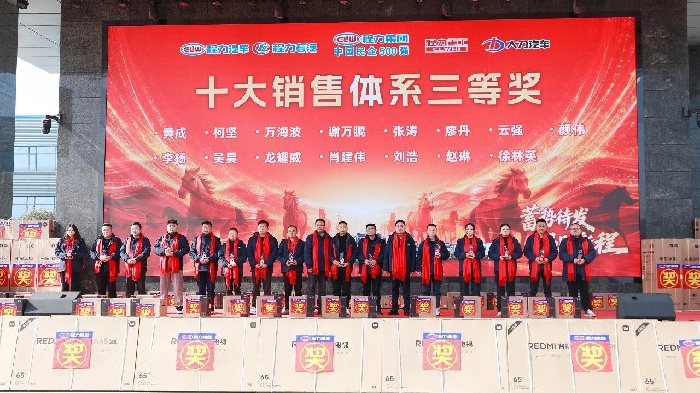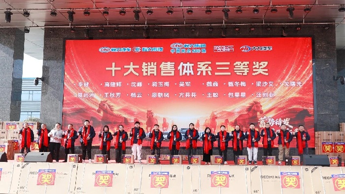 程力的每一步發(fā)展,都離不開合作伙伴的鼎力支持與攜手同行。接下來頒發(fā)的是“最佳供應(yīng)商”獎(jiǎng)項(xiàng),此榮譽(yù)授予在物料品質(zhì)、交付效率、合作協(xié)同中表現(xiàn)優(yōu)異的合作伙伴,他們是程力產(chǎn)業(yè)鏈上的重要伙伴,更是集團(tuán)高質(zhì)量發(fā)展的堅(jiān)實(shí)后盾。 銷售與經(jīng)營齊飛,服務(wù)攜創(chuàng)新共贏! 銷售與經(jīng)營體系表彰重磅登場。從金牌跟單員到十大銷售體系各獎(jiǎng)項(xiàng),從經(jīng)營激勵(lì)獎(jiǎng)、進(jìn)步獎(jiǎng)到貢獻(xiàn)獎(jiǎng),階梯式榮譽(yù)與豐厚獎(jiǎng)品——米家冰箱、空氣炸鍋、REDMI電視、筆記本電腦乃至出國游,充分彰顯集團(tuán)以績論獎(jiǎng)、重獎(jiǎng)功臣的鮮明導(dǎo)向,激勵(lì)全員勇攀業(yè)績高峰。