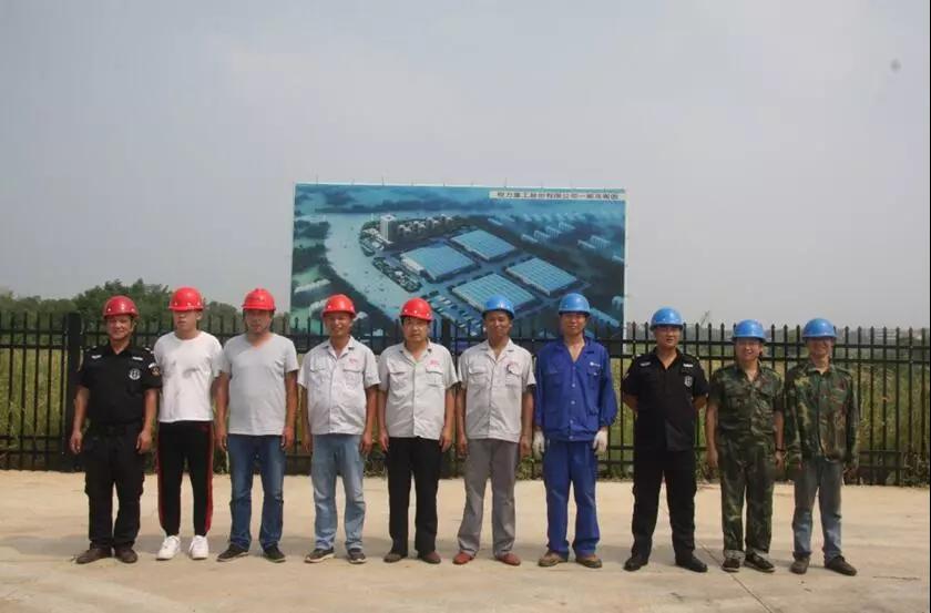 圖九:湖北程力重工消防隊(duì)員合影,左一為消防隊(duì)隊(duì)長(zhǎng)高其榮、左三為副隊(duì)長(zhǎng)吳繼國(guó) |