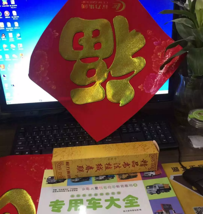 嗯嗯,這種植絨鎏金的高端對(duì)聯(lián)比我個(gè)子還高出一點(diǎn)點(diǎn)。 在精美禮品中,特別是被譽(yù)為專用汽車領(lǐng)域的葵花寶典《專汽大全》的出版發(fā)行,為培育及推廣隨州專汽區(qū)域品牌向全國(guó)性大品牌將起到積極的作用。程力公司主要領(lǐng)導(dǎo)及公司黨委還做出決定,把這份精美的禮物不僅作為新年賀禮送給員工及親人,還免費(fèi)贈(zèng)送給全市的幼兒園和兒童福利院,讓小朋友們從小就熱愛(ài)專汽、熱愛(ài)家鄉(xiāng),長(zhǎng)大后做對(duì)社會(huì)對(duì)國(guó)家有用的棟梁之才。