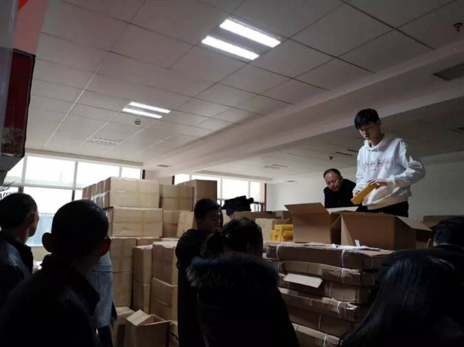 迎新賀年的精美禮品堆碼如山,分發(fā)的小伙子感覺(jué)到恐高癥了。 一車車迎新賀歲的三大件禮品(掛歷、臺(tái)歷、對(duì)聯(lián))及專汽科普少兒畫(huà)冊(cè)源源不斷的派送到員工和幼兒園小朋友的手中。 “年年歲歲花相似,歲歲年年禮品新”,今年的迎新賀禮主打?qū)F破赵亍8匾氖牵塘緦⑦@些印刷業(yè)務(wù)悉數(shù)交給貧困縣少數(shù)民族異遷安置點(diǎn)貧困戶去作業(yè)生產(chǎn),與扶貧企業(yè)巴楚風(fēng)印務(wù)公司對(duì)接,以產(chǎn)業(yè)扶貧“訂單扶貧”的方式,解決貧困戶穩(wěn)定就業(yè),勇?lián)松鐣?huì)責(zé)任,實(shí)現(xiàn)了扶貧公益的雙重效益,受到社會(huì)各界的各級(jí)政府黨委的肯定和表彰。 |