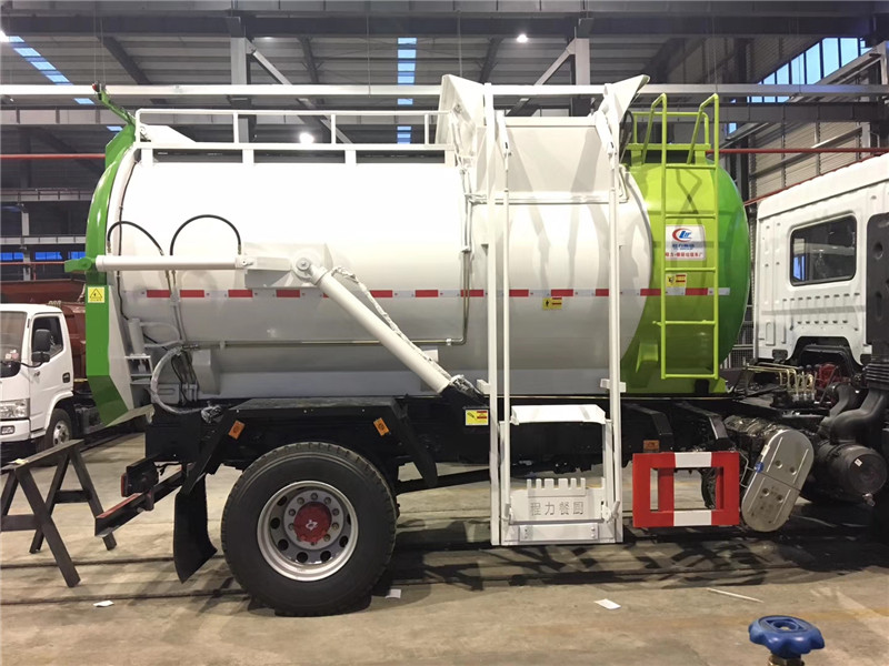 底盤配置:東風D9餐廚垃圾車專用底盤,康明斯210馬力國六發動機,6檔變速箱,295真空胎,3950軸距,空調,ABS,自動調節臂,電動玻璃,行車記錄儀。 上裝配置: 罐體采用 4mm 優質碳鋼制作,圓形罐體,罐體前后封頭采用圓弧蝶形封頭,配拉桿式提升機,可掛120/240升垃圾桶,罐體底部配雙缸液壓舉升自卸,罐體尾門液壓打開和鎖緊+手動鎖緊裝置,罐內設固液分離裝置,罐尾設液體自流閥,液位窗,后門液壓開啟,帶工具箱,洗手裝置。 |