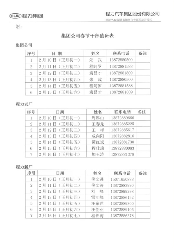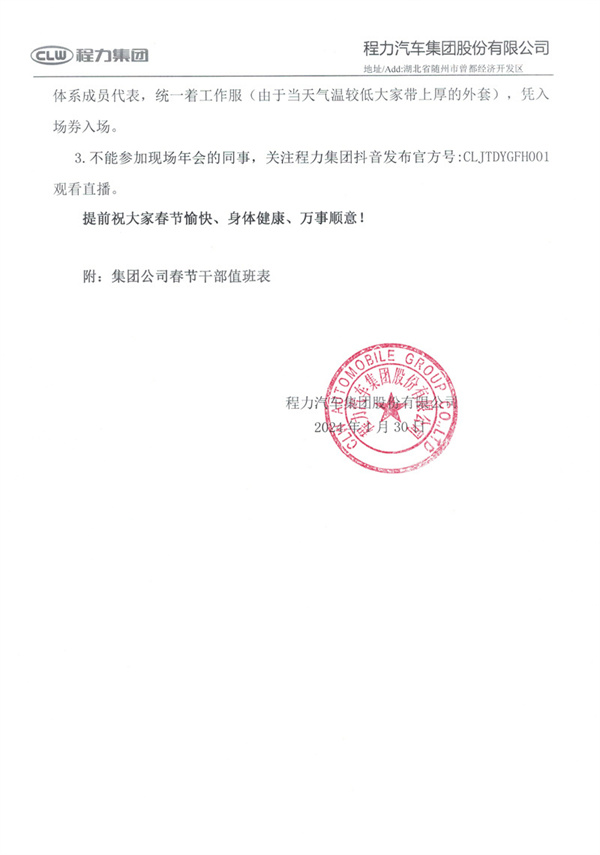 程力汽車集團關于2024年春節放假的時間及”網絡直播年會暨總結表彰大會的通知
