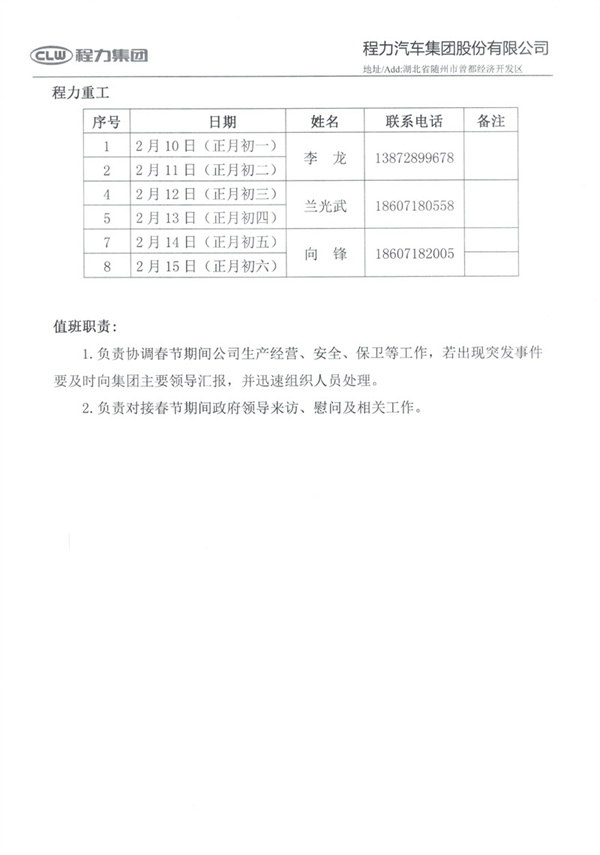 根據國務院辦公廳2024年放假有關規定,現將程力汽車集團公司2024年春節放假安排通知如下: