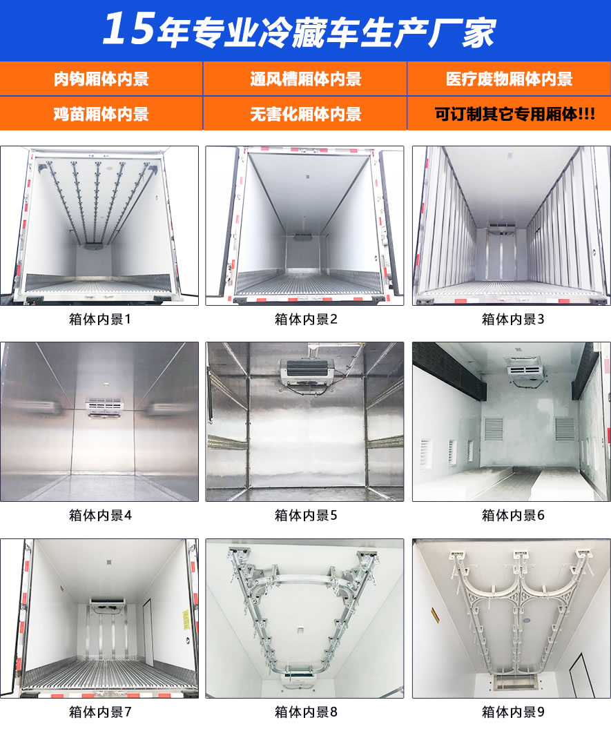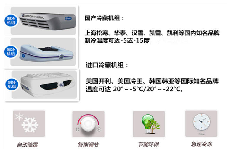 箱體采用三明治結(jié)構(gòu),內(nèi)外采用冷藏車專用玻璃鋼(可反射陽光可選用不銹鋼),中間保溫層采用聚氨酯發(fā)泡隔熱材料,18米罐注一次成型,產(chǎn)品重量輕,漏熱率(導(dǎo)熱系數(shù))低,強(qiáng)度高,保溫效果好,廂體美觀大方扎實耐用。廂體厚度8CM.廂體全為不銹鋼鎖件,鋁合金包角,廂體可選裝通風(fēng)槽、開側(cè)門等。根據(jù)需要可選裝配國內(nèi)外知名制冷機(jī)組(溫度達(dá)到保鮮或冷凍要求),可根據(jù)您的需求進(jìn)行定制生產(chǎn)。