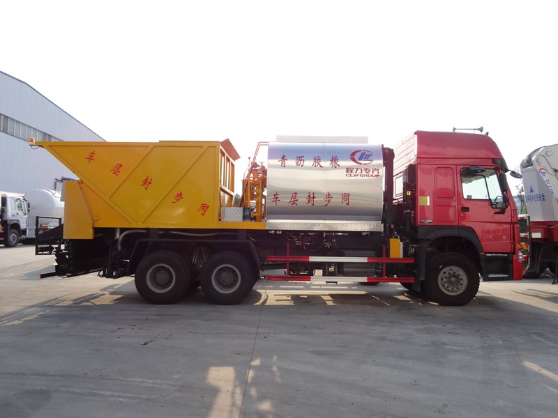 同步碎石車主要有瀝青灑布系統、石料撒布系統、電氣操作系統、輔機系統組成。