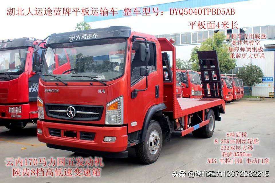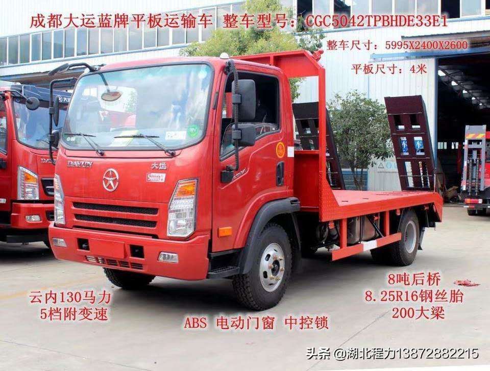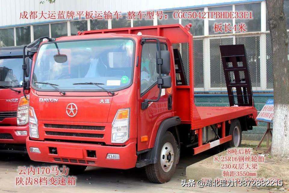 成都大運藍牌挖機平板運輸車配置圖片(云內170馬力),廠家參考價格:12萬元