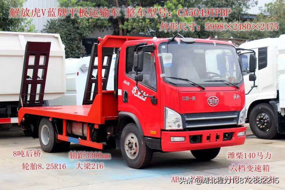 解放虎V藍牌挖機平板運輸車配置圖片(濰柴140馬力)廠家參考價格11.9萬元