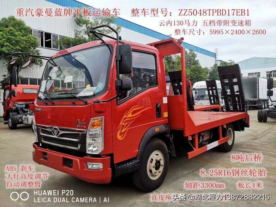 重汽豪曼藍牌挖機平板運輸車配置圖片(云內130)廠家參考價格;10.2萬元