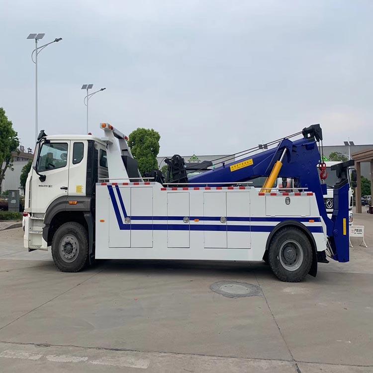 湖北程力國六重汽豪瀚托吊連體清障車程力威牌CLW5181TQZZ6型清障車配置: 國六重汽浩瀚16噸拖吊聯體清障車整車性能: 國六重汽浩瀚16噸拖吊聯體清障車,單橋拖吊聯體清障車車型中的最大車型,配備曼310馬力發動機,16噸上裝,相對于后八輪和前四后八車型,該車工作起來更加靈活,對中大型車輛救援也可以獨擋一面. 湖北程力國六重汽浩瀚16噸拖吊聯體清障車底盤配置: 豪瀚H77L駕駛室輕奢版、德國曼310馬力發動機,重汽10檔變速箱,6000mm軸距,7.5噸前橋盤式制動、16噸后橋,11.00R20鋼絲胎、雙層車架(8+5/280)、氣囊座椅、空調、多片簧(9/9+6)、ABS、高位保險杠(金屬)、中國重汽智能通D版行車記錄儀、電動門窗、遙控鑰匙、中控鎖。 湖北程力國六重汽浩瀚16噸拖吊聯體清障車上裝配置: 16噸拖吊聯體上裝,整車配備2部80KN卷揚機(液壓絞盤)、40米鋼絲繩、兩節六邊型吊臂,三節托臂,分體式車廂,雙側聯動操作裝置,前保險杠裝有配重,后工作燈3只,1個洗手箱,U型抱胎裝置1套,托叉5對,托叉座1對,鏈鉤2條,輔助燈總成1套,輔助制動氣管總成1套。 購車前必看:此款車型我公司已申報國家公告,可合法上戶,因清障車專用組成部分、發動機配置不同,所以整車價格不同.您可以在購車前與我們聯系,我們會根據您的需求給您最合適的車型配置和最優惠的價格,歡迎來電咨詢。 國六重汽浩瀚16噸拖吊聯體清障車整車出具: 底盤合格證、整車合格證、全國統一機動車輛發票、隨車工具、車輛質保手冊、全國服務站名錄等。 湖北程力國六重汽豪瀚托吊連體清障車程力威牌CLW5181TQZZ6型清障車多方位圖片: