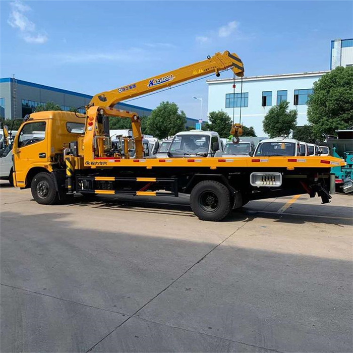 國六多利卡帶吊清障車上裝配置:東風多利卡帶吊清障車,板長5.4米,寬2.35米,平板可采用新型一次性成型沖壓板或4個厚花紋板,可配2~4噸吊機,帶地板鉤,4噸上裝配4噸卷揚,隨車工具一套,2個輔助輪小車,L型抱胎架一對,4套捆綁帶,配黃色長排LED工程警燈一套。我公司清障車采用國外先進嫻熟產品技術、生產工藝,全進口密封件液壓件,加強型橫梁固定,增強了承載能力,拖車過程中性能更加穩定,我公司在全國設有售后服務站,并保證全國均可上戶。