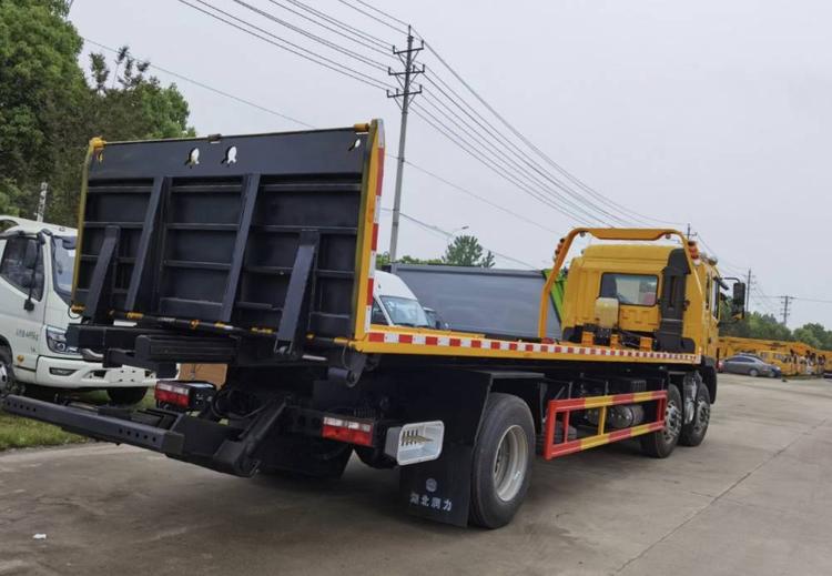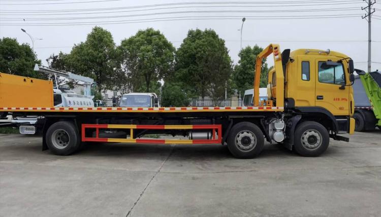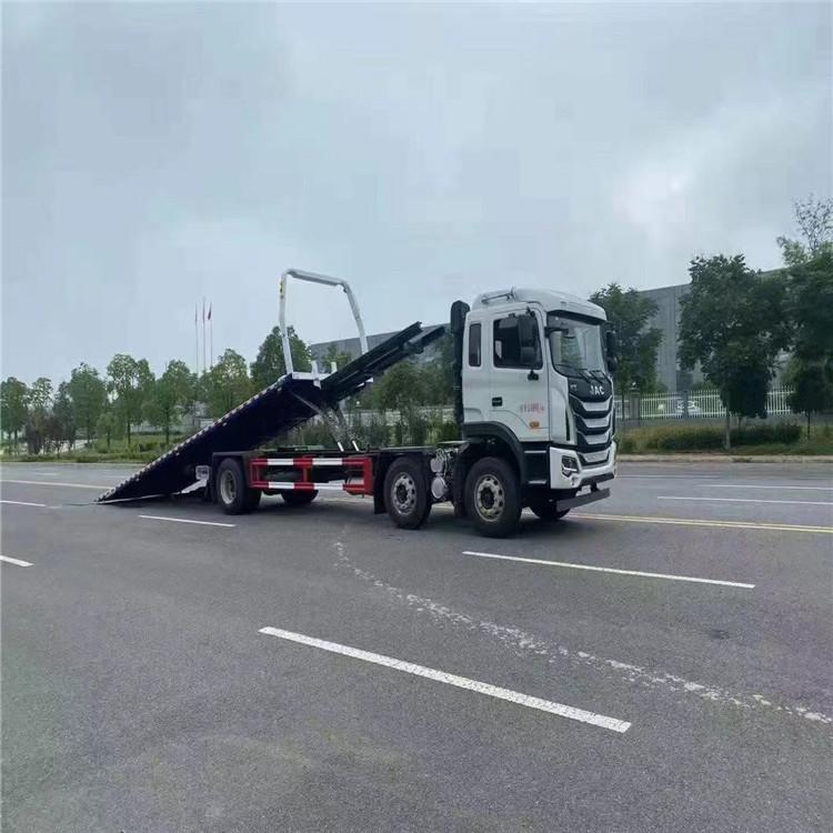 江淮K5小三軸,錫柴290馬力,法士特8檔變速箱 11.00輪胎,280大梁,空調,ABS,行駛記錄儀,電動玻璃升降,電動翻轉,氣囊座椅。 12噸上裝,12噸后托臂,重心低,受力平均,平板尺寸9.6米,平板寬2.55米,10噸液壓卷揚。 湖北程力國六江淮K5小三軸平板清障車(平板長度9.6米)程力牌CL5250TQZH6ZQ型清障車圖片價格: