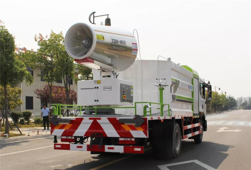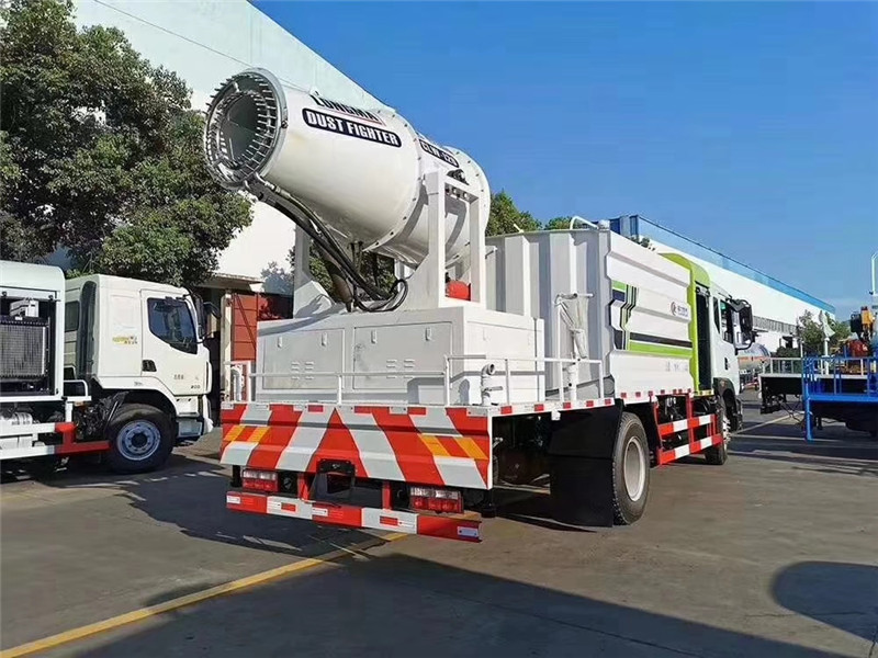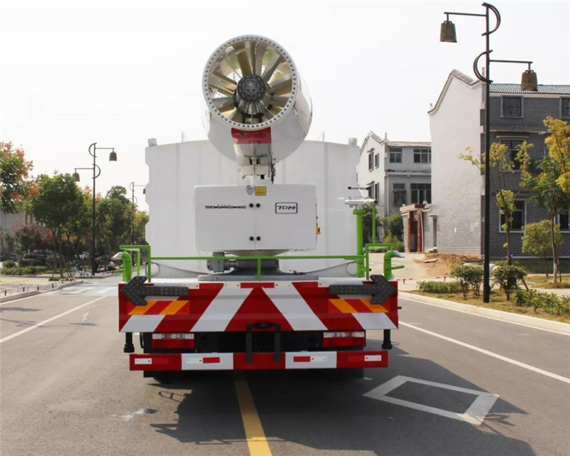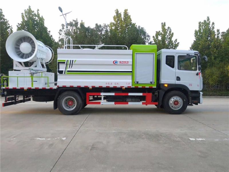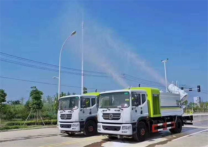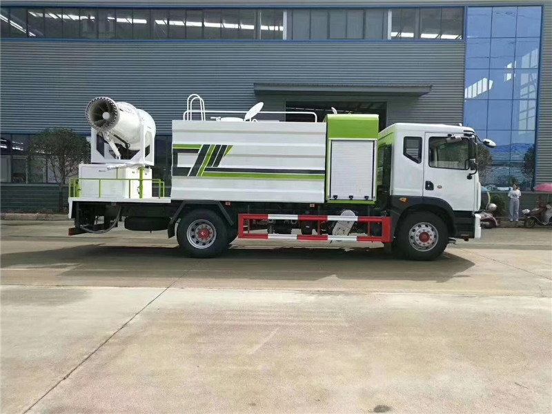 底盤配置:采用國六東風(fēng)新款多利卡D9系列底盤生產(chǎn),軸距4500mm,底盤發(fā)動(dòng)機(jī)為康明斯230馬力,295真空胎,東風(fēng)6檔變速箱,國六排放標(biāo)準(zhǔn),罐體容積:10立方,罐體鋼板采用Q235碳鋼鋼板,采用方形瓦楞設(shè)計(jì),外觀大氣靚麗,后工作平臺(tái)加裝高效率車載式風(fēng)送噴霧機(jī),噴藥炮霧化效果好,可遠(yuǎn)程噴霧,東風(fēng)多利卡D9抑塵車帶前沖后灑、側(cè)噴、平臺(tái)高炮、自流閥及消防接頭各1個(gè)、標(biāo)配億豐泵或金龍泵,可選裝50-100米噴霧機(jī)。 上裝配置:罐體容積10立方,罐體為方形罐,罐體內(nèi)部做防腐,主管路鍍鋅,帶前部沖洗路面噴灑裝置、后部扇形降塵噴灑裝置,兩側(cè)面噴灑裝置,帶后部工作平臺(tái)、平臺(tái)上安裝綠化灑水炮(炮噴射形狀可調(diào)),可調(diào)直沖狀、大雨、中雨、毛毛雨,可連續(xù)調(diào)節(jié),采用中聯(lián)唯佳大流量水泵,消防接口可自流,音樂喇叭,50-100米噴霧機(jī)組。 噴霧機(jī)配置:TDM-M08型,可無線操作,及手動(dòng)操作。根據(jù)需求選配的霧炮機(jī)霧化距離在60-120米不等(靜風(fēng)室內(nèi)距離),實(shí)際射程:(霧化射程會(huì)受濕度、溫度、風(fēng)速等各方面天氣因素的影響,另外天氣干燥地區(qū)一部分在空中被蒸發(fā)掉)。CLW-100型60米,副發(fā)電機(jī)組功率50(Kw),風(fēng)機(jī)功率15(Kw),不銹鋼多級(jí)離心泵功率5.5(Kw)。100米無線操作,霧化距離60米(靜風(fēng)室內(nèi)距離)實(shí)際射程:(霧化射程會(huì)受濕度、溫度、風(fēng)速等各方面天氣因素的影響,另外天氣干燥地區(qū)一部分在空中被蒸發(fā)掉)。 湖北程力國六東風(fēng)D9方罐抑塵車程力威牌CLW5180TDYD6型多功能抑塵車圖片價(jià)格: